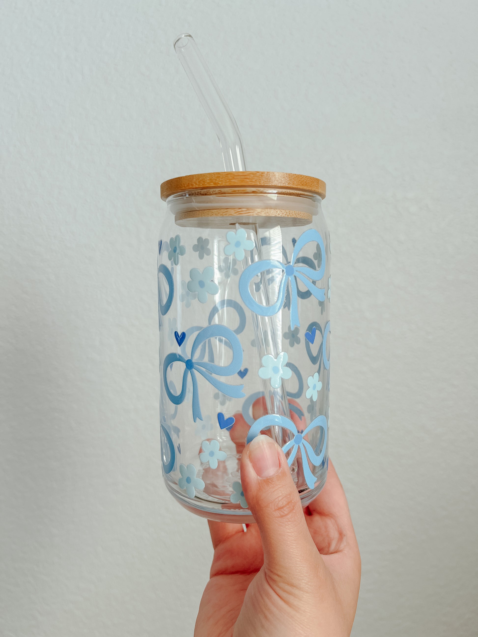 Blue Coquette Bow Glass Cup