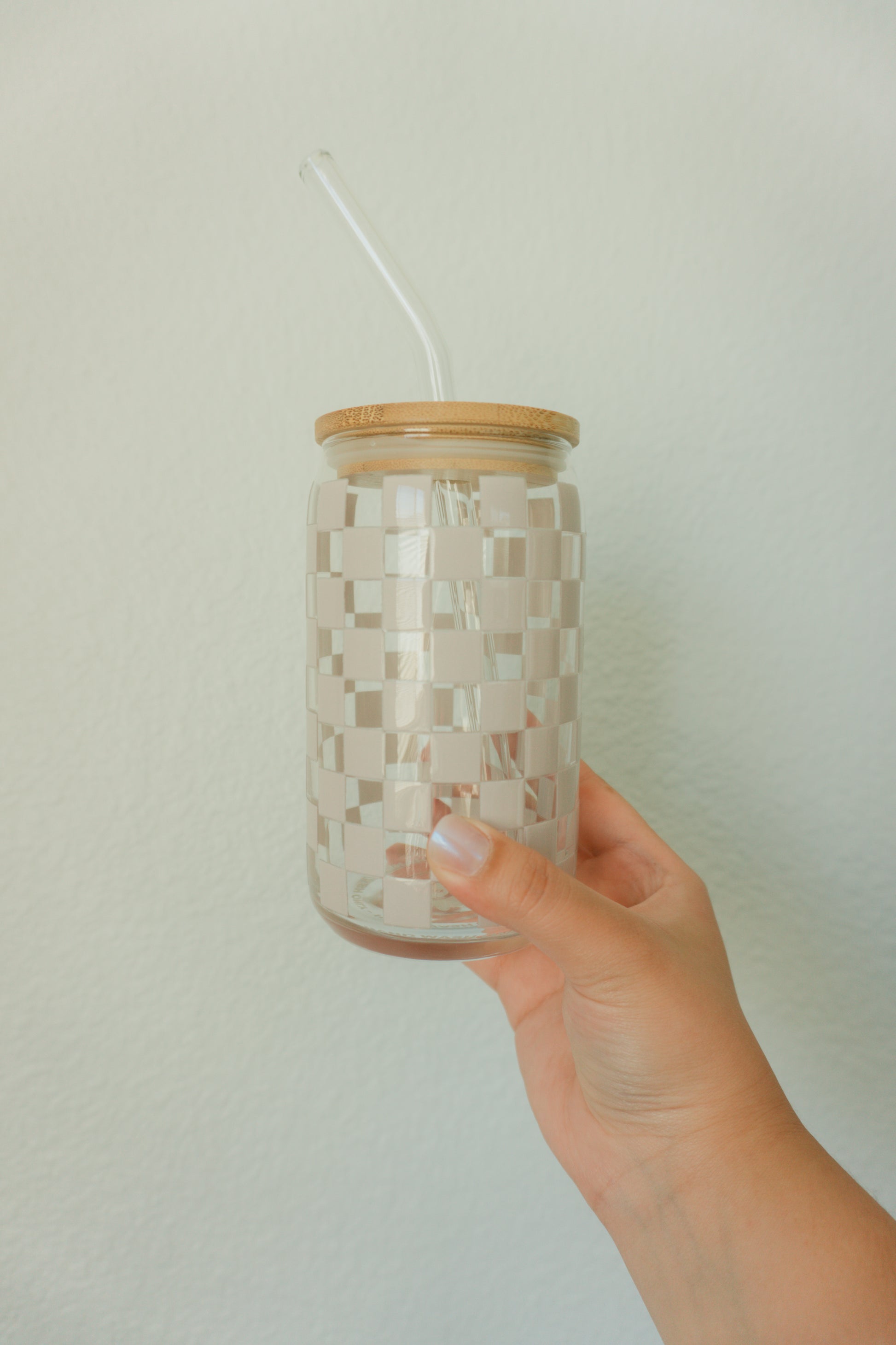 16 oz. glass cup is wrapped around with UV DTF decal. Great for drinking your iced or warm beverages. Bamboo lid and glass straw are included.