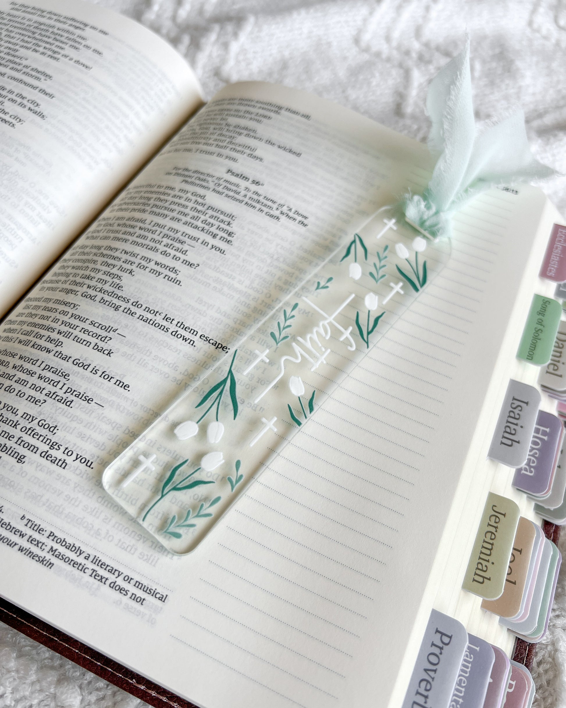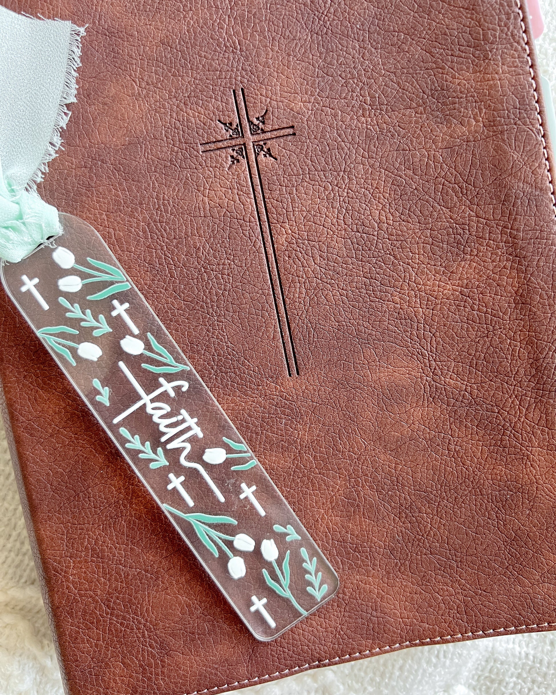 Faith White Tulip Acrylic Bookmark