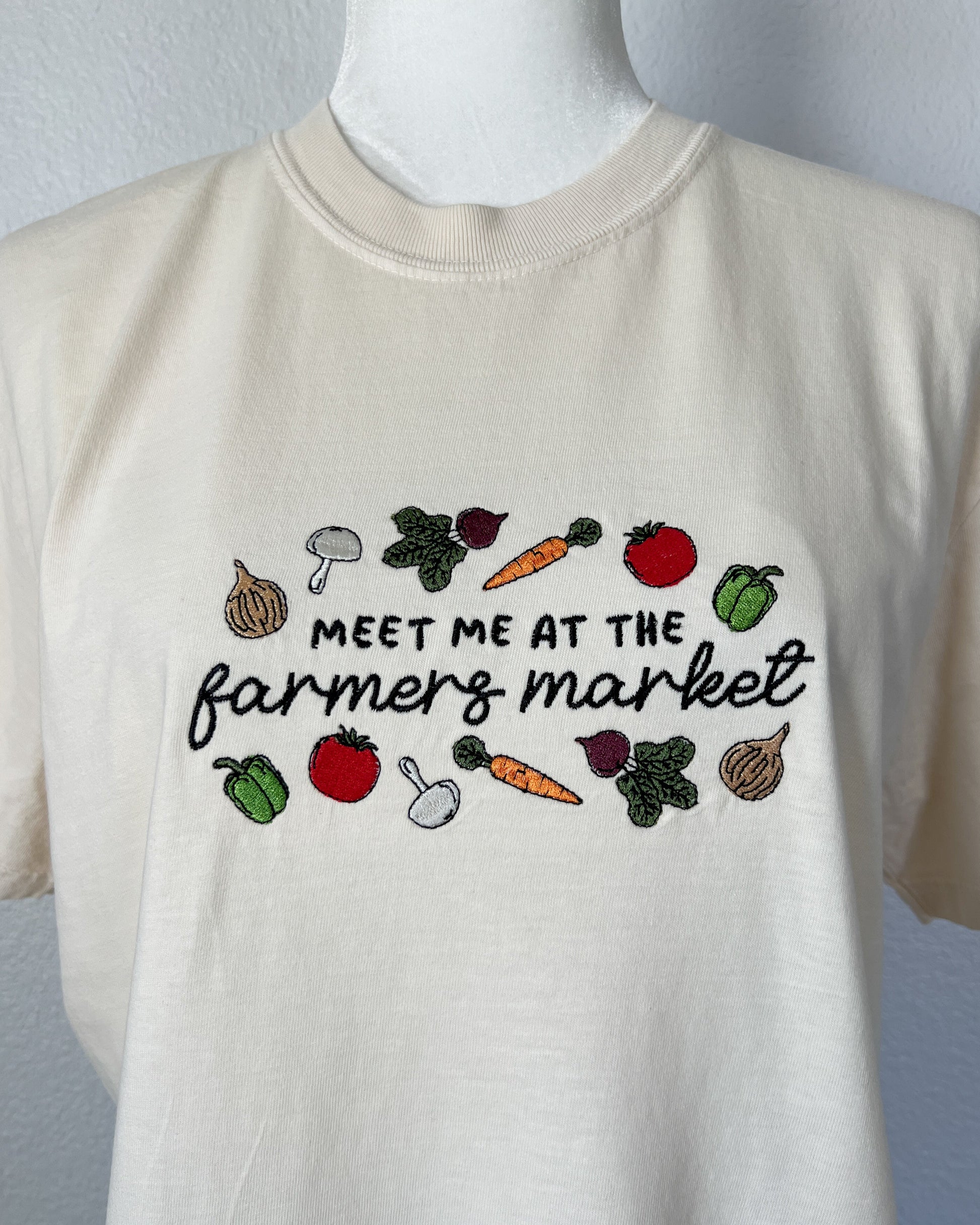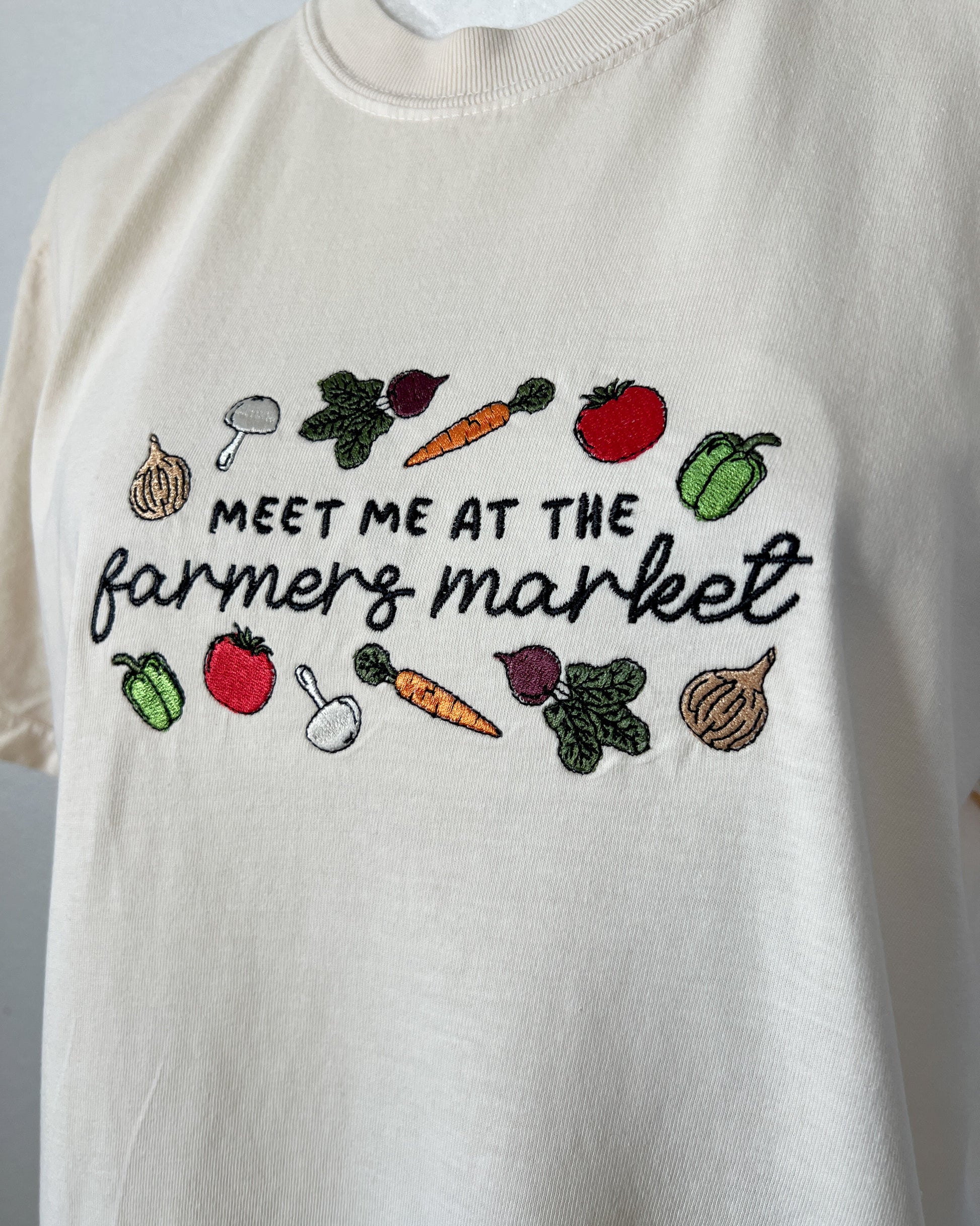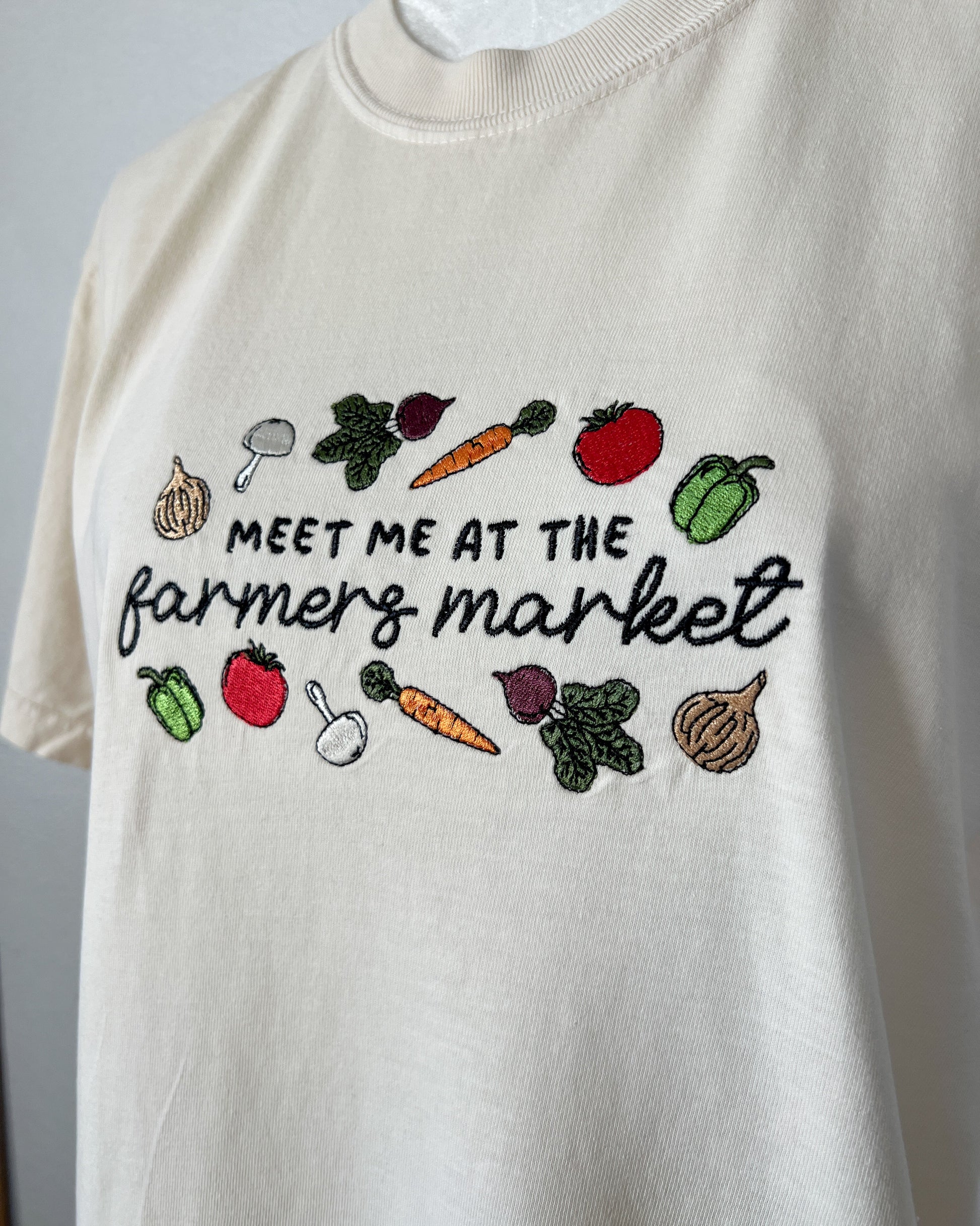 Meet Me At The Farmers Market Embroidered T-Shirt